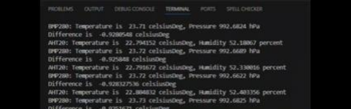 Pressure: {}, Temp Difference: {}".format(temp_aht, hum,