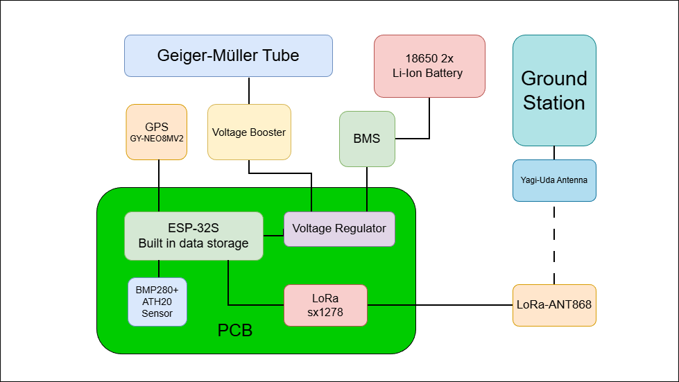 The Kaboom CanSat team’s secondary mission is comparing radiaoctive radiation between ground level and the approximate height of 1 km.